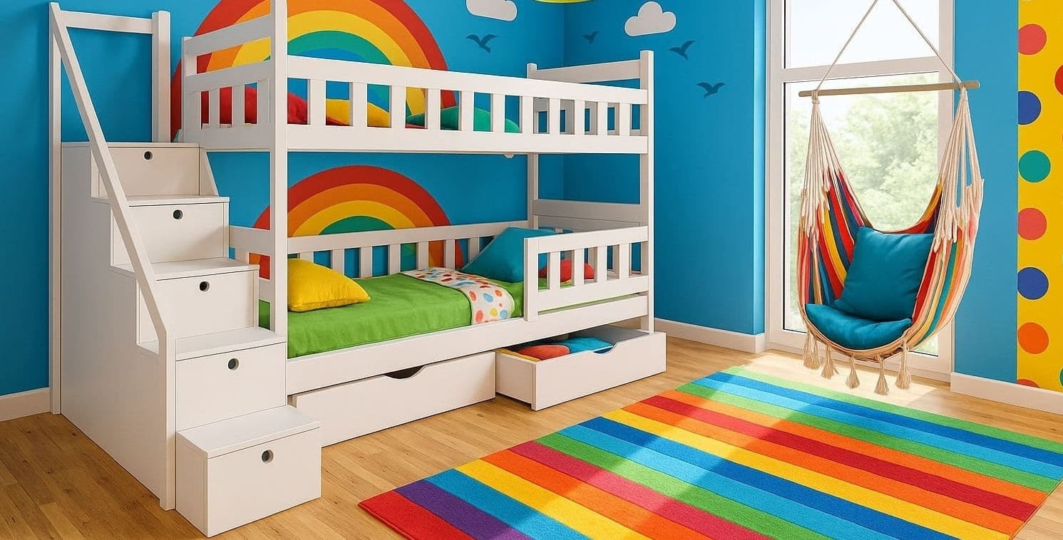 Etagenbett „DreamSteps“ – Massivholz Kinderbett mit Treppe & Schubladen
